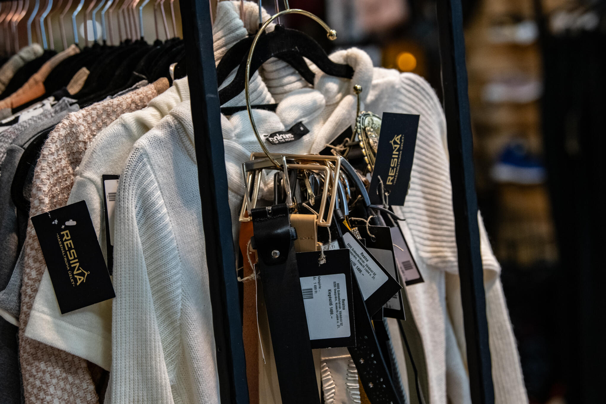 That’s why every single piece – whether clothing, shoes, or bags – goes through multiple rounds of selection before it reaches the racks.Resina Mercato (Székesfehérvár, Rákóczi Street 3.) offers an authentic thrift shopping experience across 300 m², with a focus on quality.Our Veszprém store, located at Kossuth Lajos u. 21., operates on a kilo-based system – with the same hanger-style, easy-to-browse layout, and carefully curated selection.Our Budapest store (Teréz Boulevard 29.) is a hybrid concept: per-item pricing with a separate vintage section featuring rarer, branded pieces.Resina is more than just a store – it’s a community.